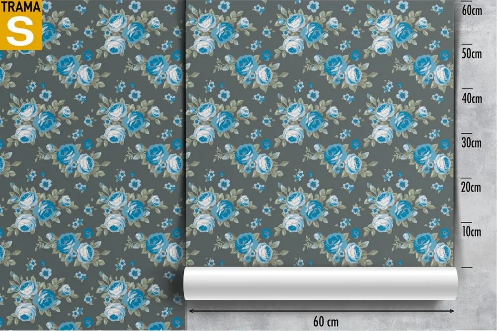 Carta da Parati fiori azzurri natura design moderno.
