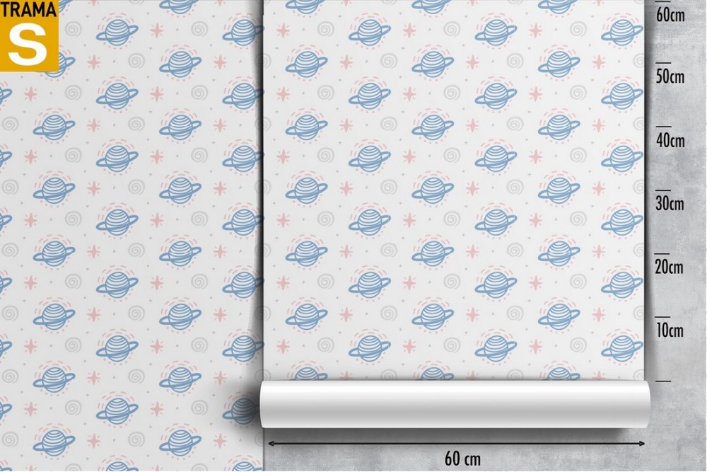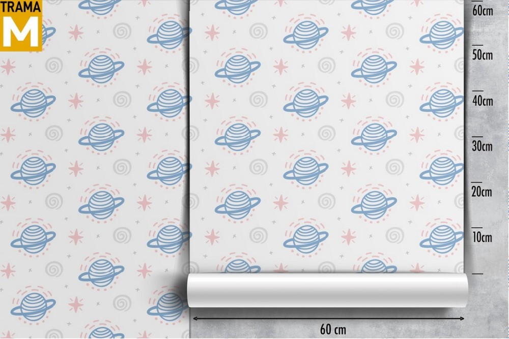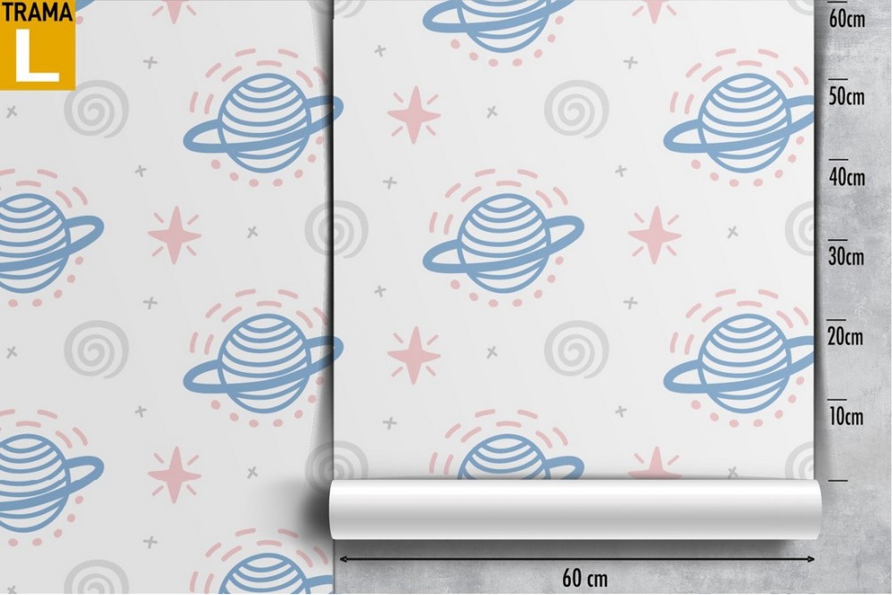 Children's wallpaper with drawn planets.