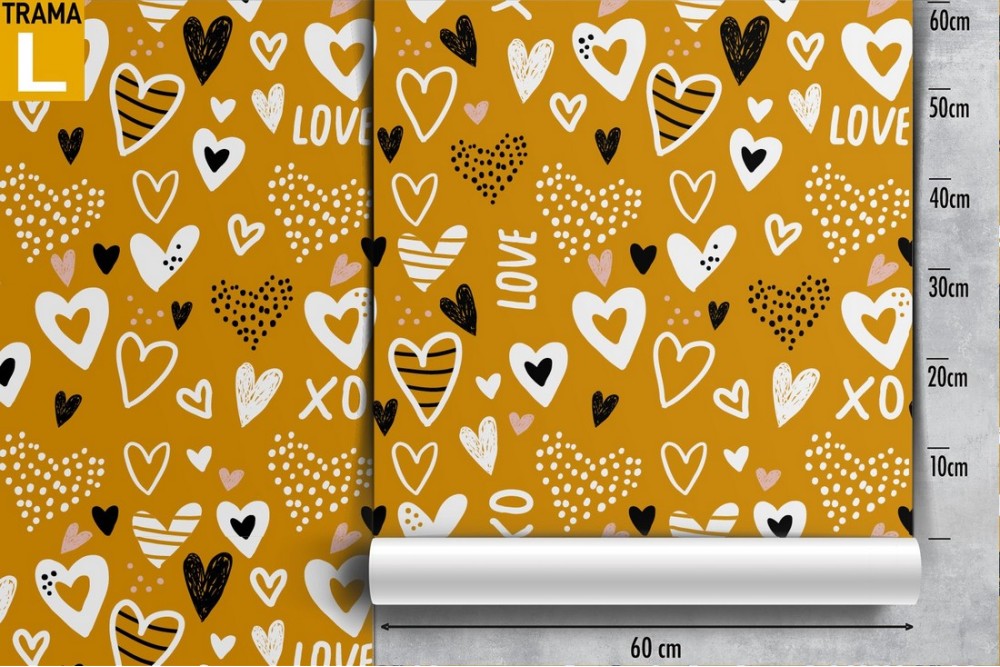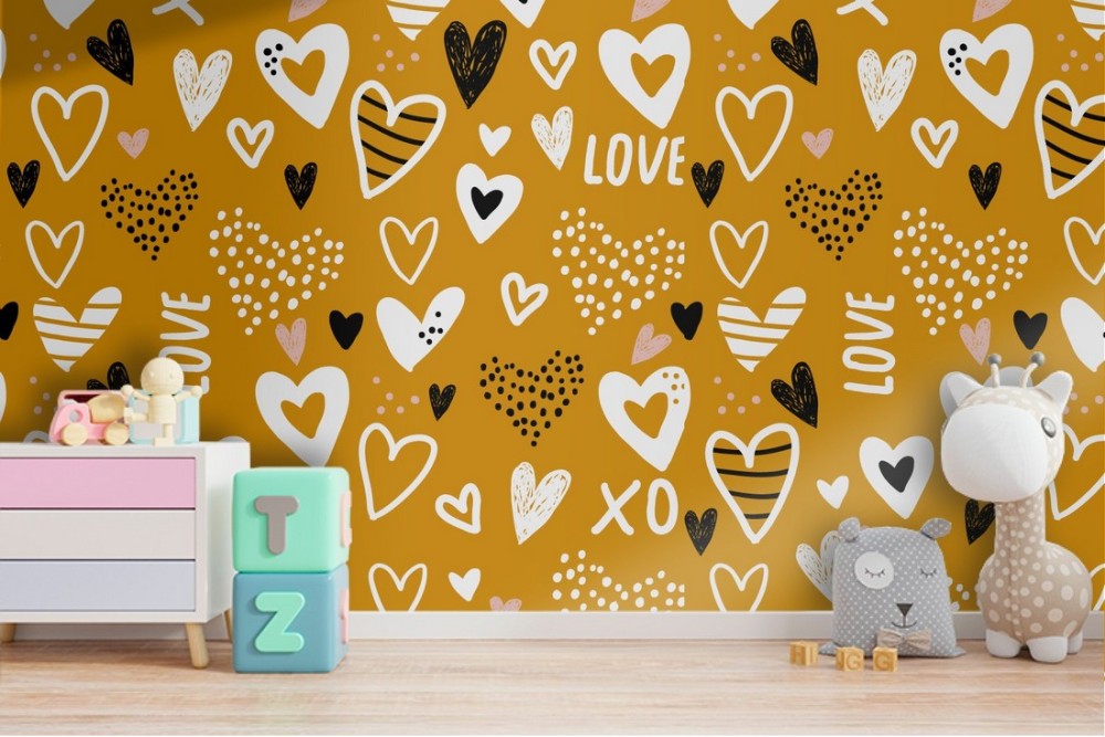 Children's wallpaper with LOVE written and hearts.