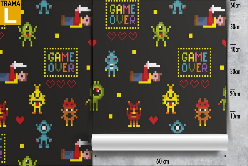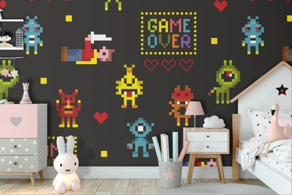 Wallpaper of arcade game characters for children.