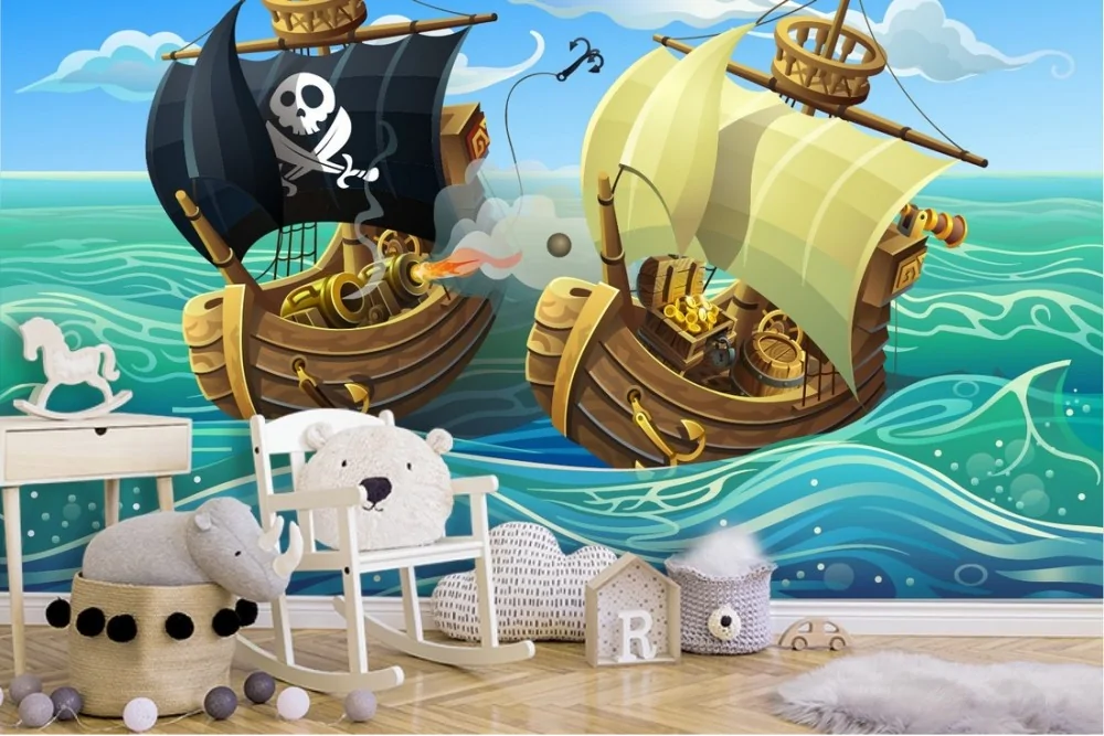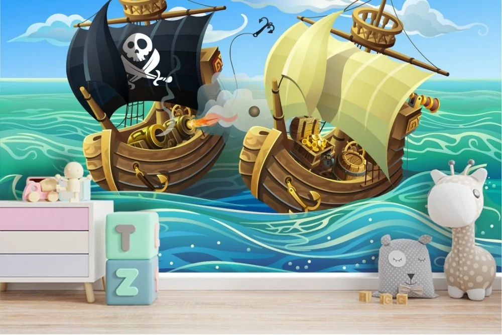 Wallpaper illustration children pirate ships