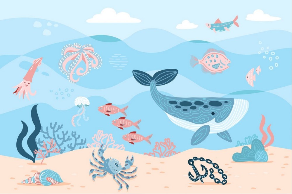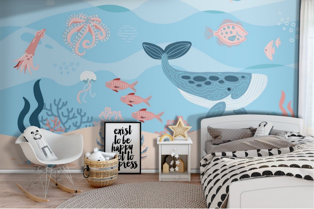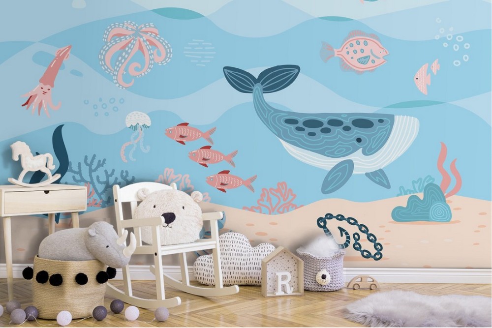Wallpaper with fish and marine animals for children's room-29