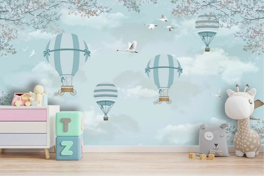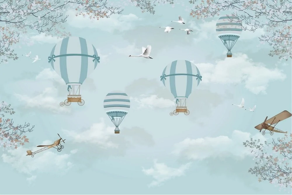 Children's Wallpaper Landscapes Rockets airplanes hot air balloons Sky