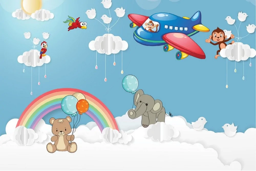 Children's Wallpaper Animals Birds Rockets Airplanes Hot Air Balloons