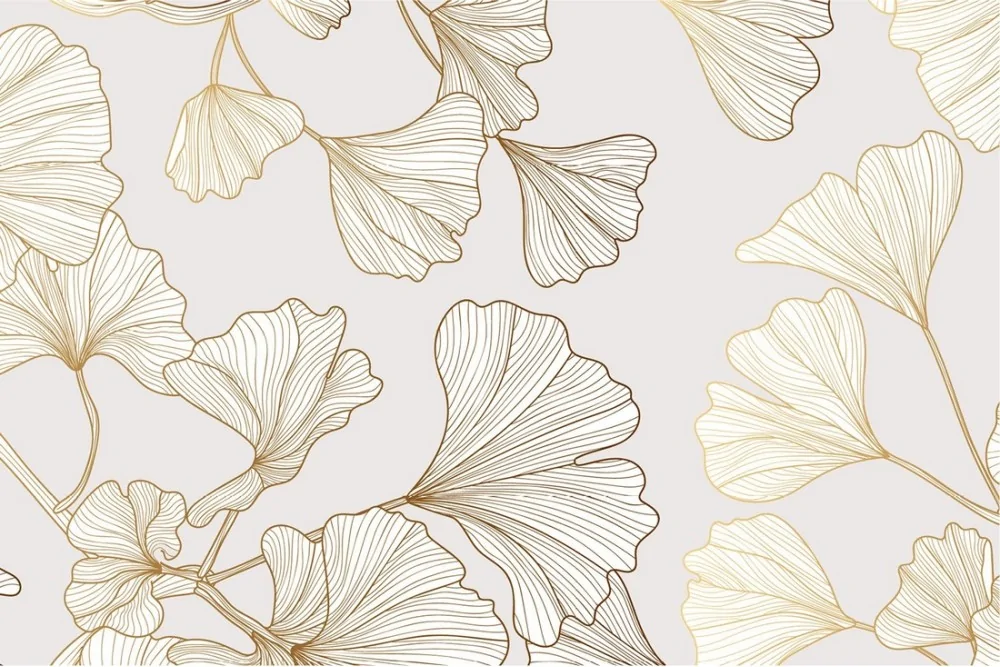 Stylized flower wallpaper marble and gold surface