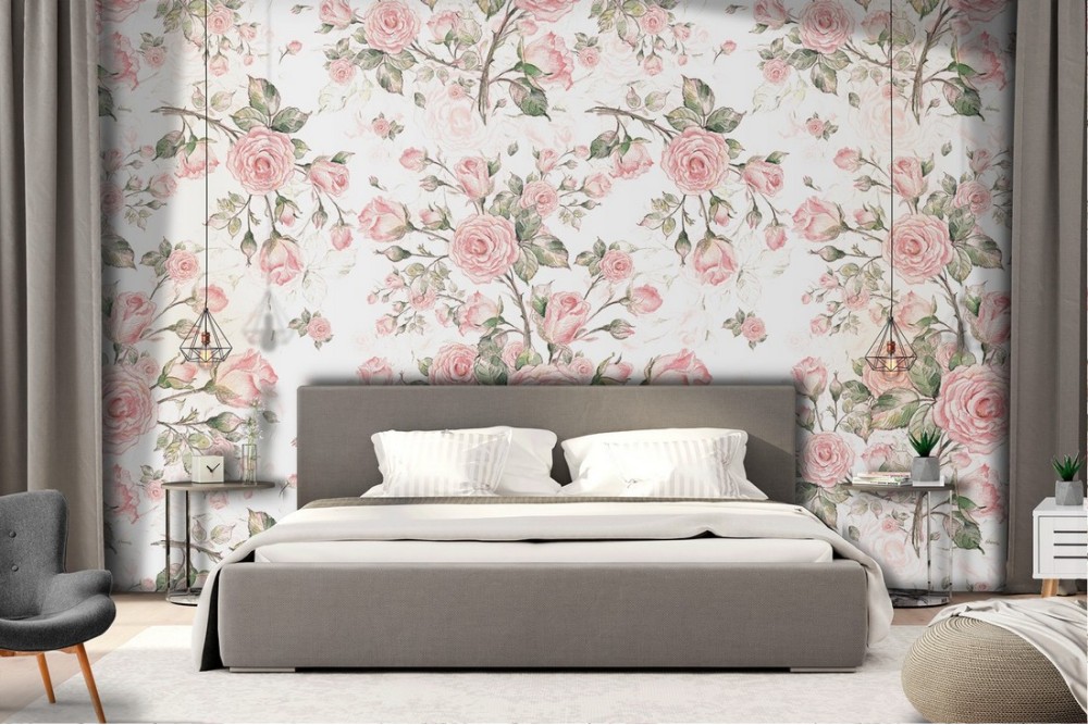 Wallpaper decoration vintage roses flowers.