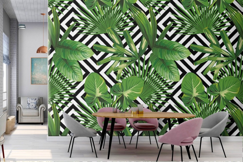 Modern Geometric Wallpaper Tropical Nature Leaves