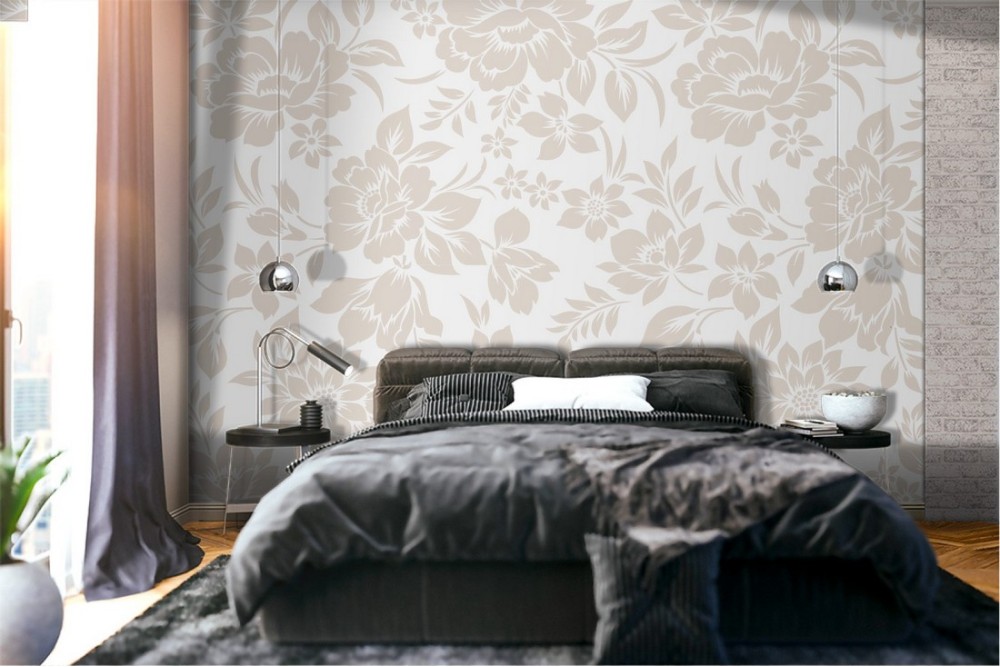 Wallpaper with refined stylized flowers in antique white nature.