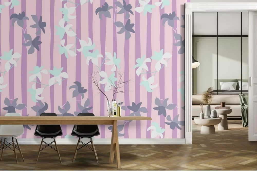 Wallpaper Design and Styles Flora and Fauna Modern Flowers Nature Stripes and Waves