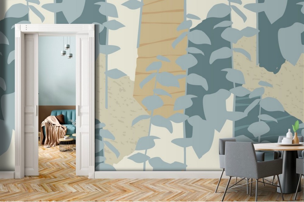 Wallpaper Design and Styles Flora and Fauna Modern Stylized Leaves Nature