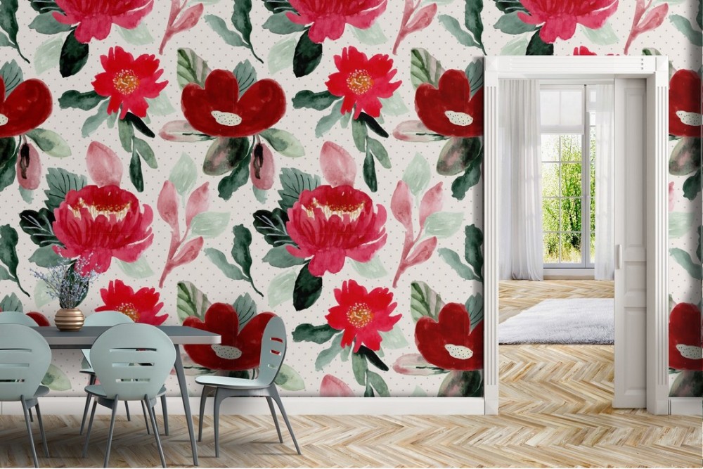 Red roses nature pattern modern wallpaper.