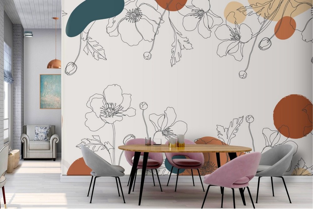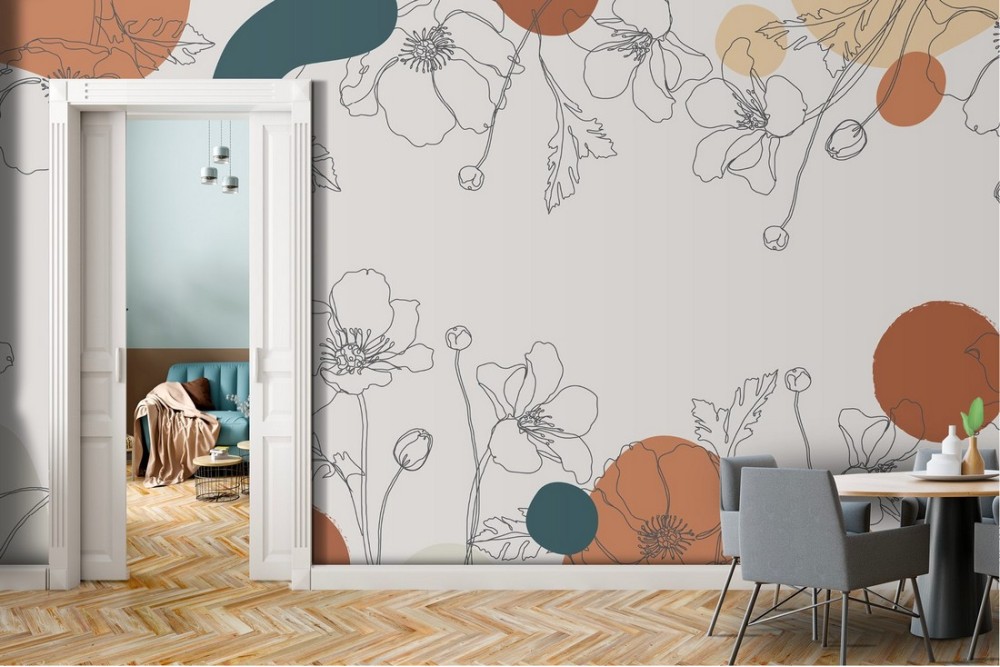 Wallpaper stylized flowers nature vintage design