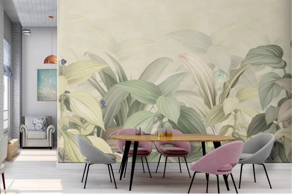 Wallpaper Design and Styles Flora and Fauna Tropical Leaves Vintage Nature