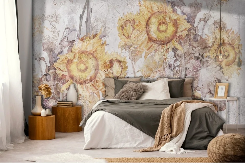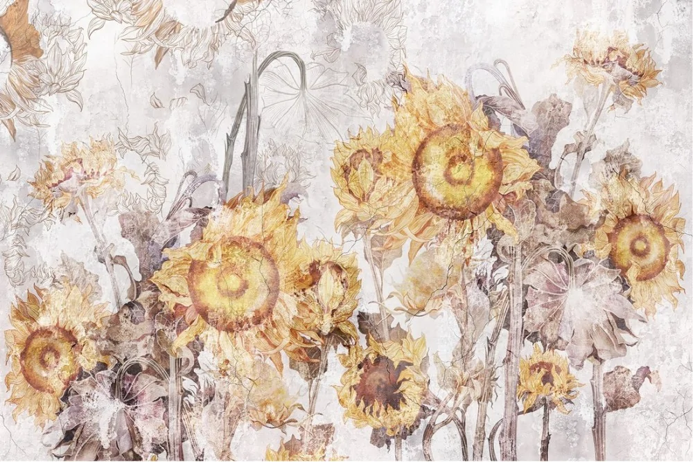 Wallpaper illustration nature vintage sunflowers
