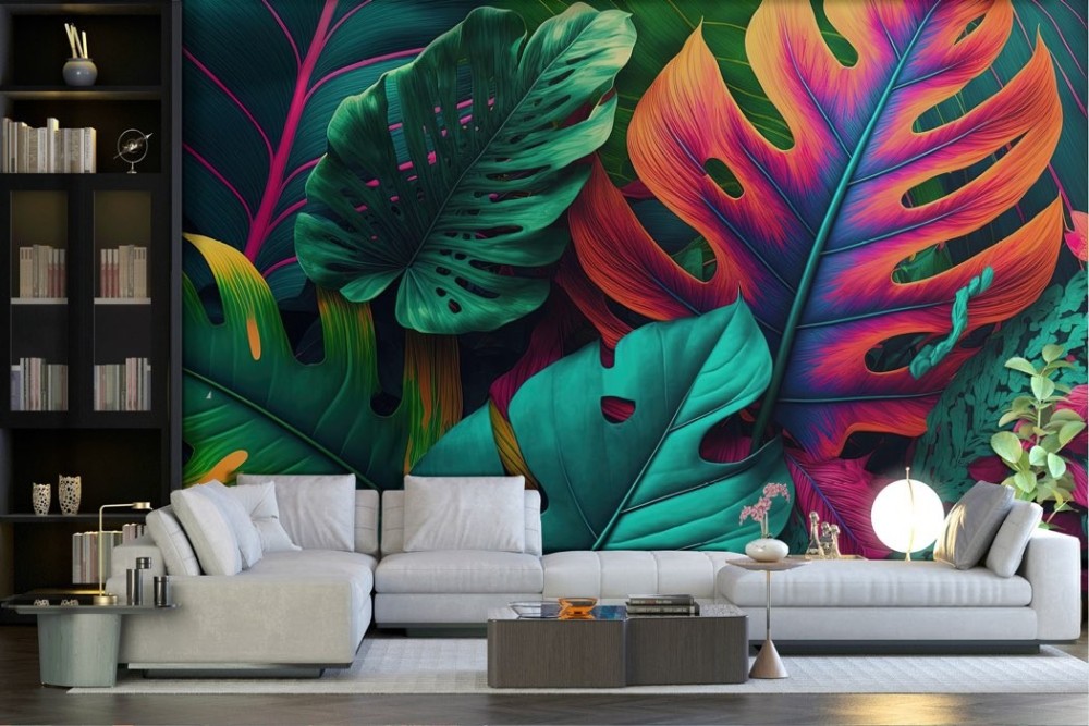 The wallpaper Colorful Tropical Leaves, is produced exclusively in Italy to ensure the highest quality and craftsmanship. All our wallpapers can be customized FREE of charge in style and colors to better suit your environments and your needs. Our designers will also create a simulation of the new wallpaper in your rooms to see in advance the graphic effect achieved. Subsequently, the wallpaper is printed to measure in very high resolution. All our wallpapers do not contain solvents or dangerous chemicals. We have a wide range of finishes including CLASSIC SMOOTH, CANVAS, ADHESIVE or GLASS FIBER (discover the characteristics in the wallpaper type section). The modern wallpaper is perfect for giving a touch of style to your rooms, while the vintage wallpaper is ideal for those who love the 70s style. If you are looking for a 3D effect instead, we recommend the 3D wallpaper. Our product is suitable for every room in the house, from the bedroom wallpaper to the living room or children's room. We offer refined and elegant wallpapers, if you prefer a more natural style instead you can choose from our wallpapers with flowers, trees and woods. For bathrooms and humid environments, we recommend the glass fiber wallpaper, while to cover furniture or tiles, you can use our adhesive wallpaper. We are proud to be one of the best wallpaper brands on the market and to guarantee a high quality and certified product. (# Bedroom wallpaper, Living room wallpapers, refined, modern, design, best wallpaper, vintage wallpaper, 70s wallpaper)