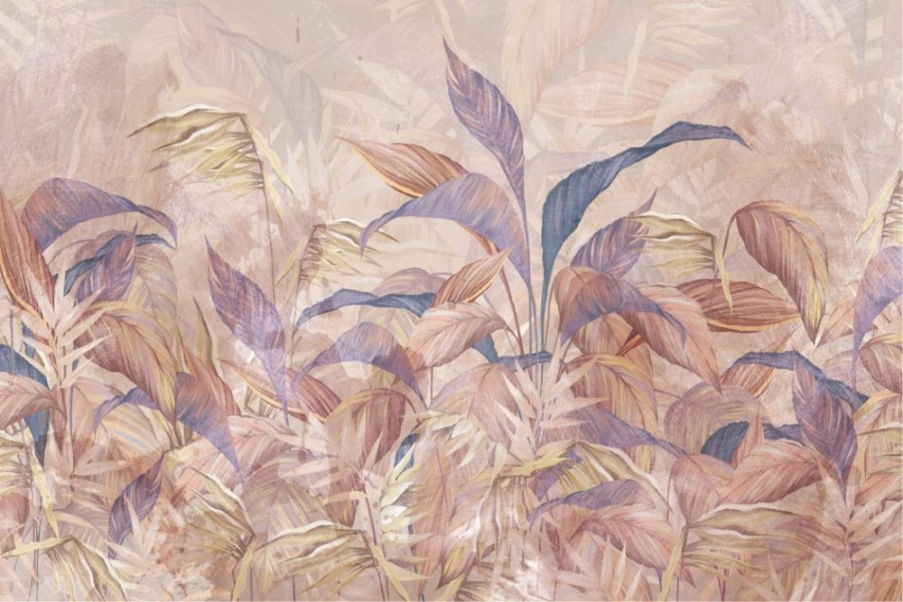 Tropical Leaves Wallpaper with Oriental Zen Effect -a288
