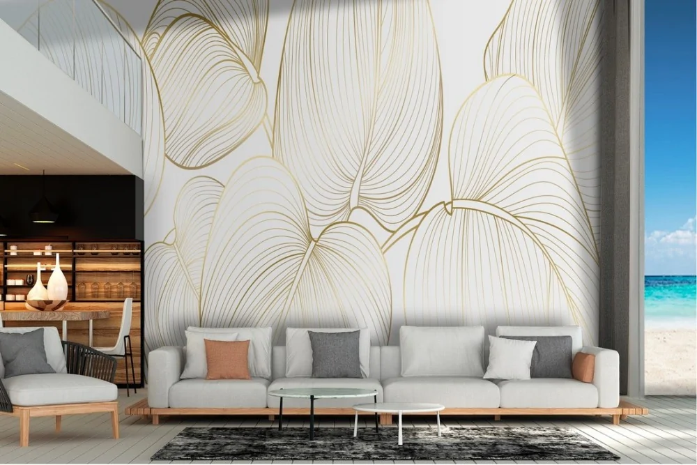Tropical large stylized leaves wallpaper