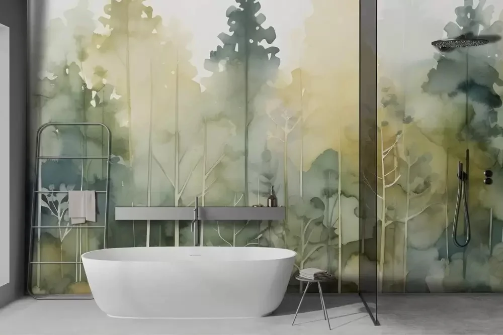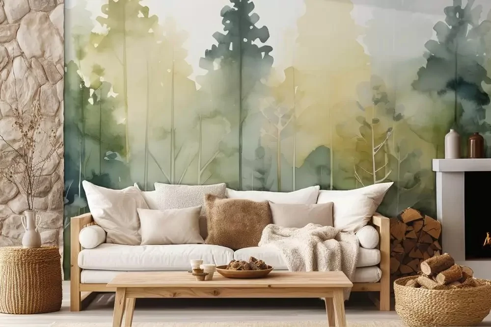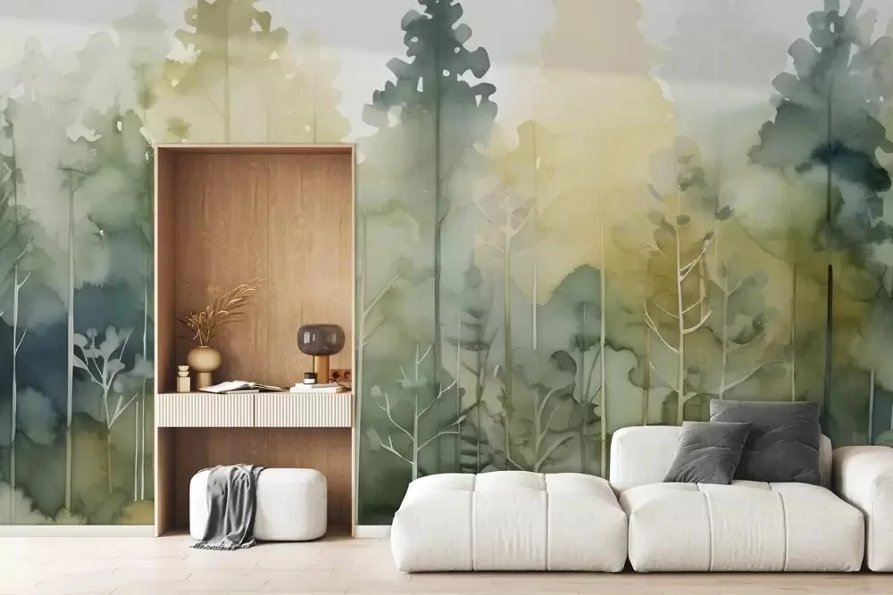 Carta da parati bosco acquerello per un effetto naturale e rilassante