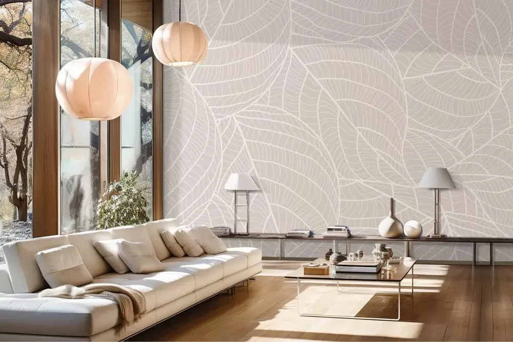 Carta da parati foglie stilizzate fondo avorio