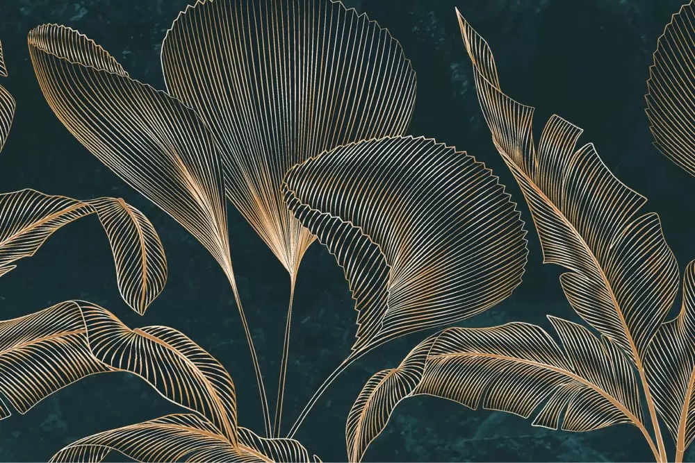 Carta da parati foglie tropicali dorate