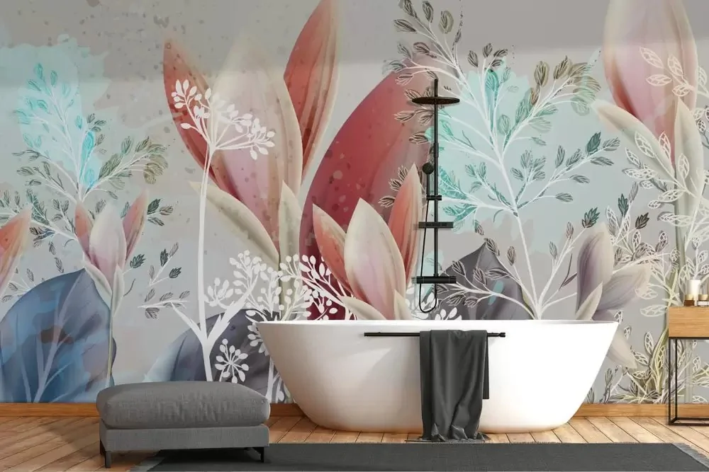 Carta da parati fiori astratta delicata ed elegante, materica e avvolgente. Ideale per camere e zone relax. Inchiostri a base d’acqua, atossici.