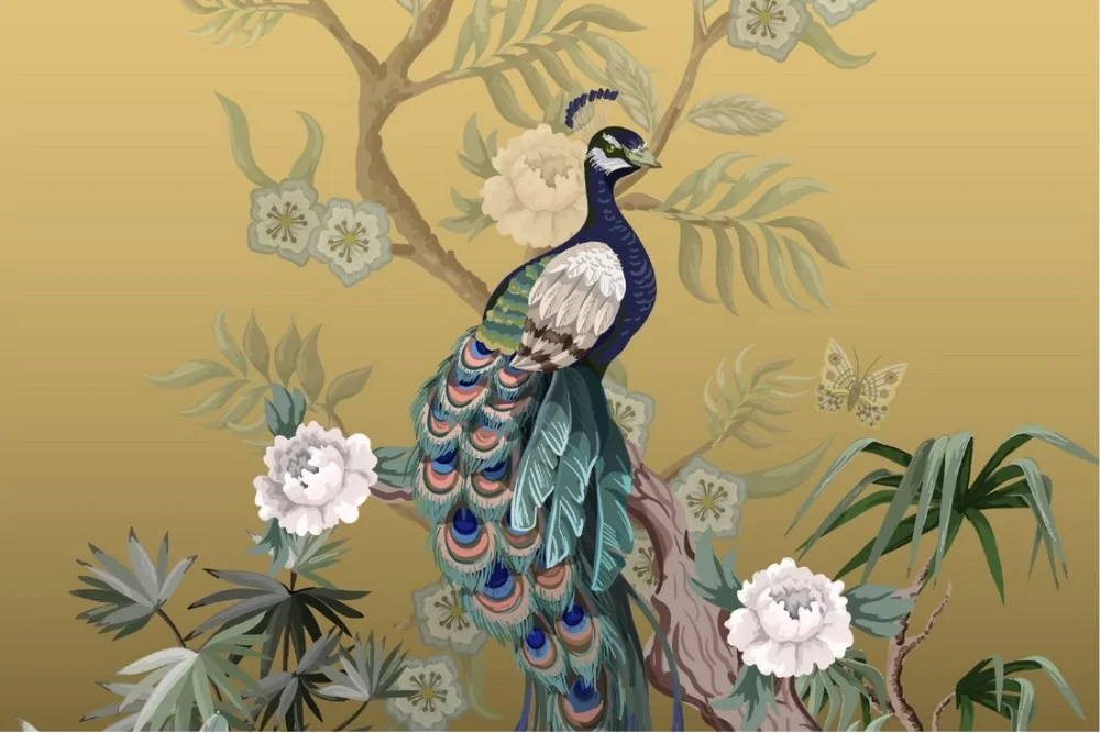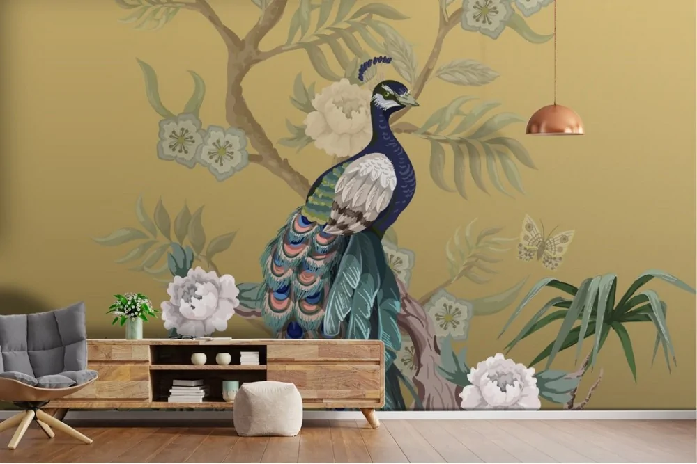 Peacock Wallpaper with abstract nature flowers luxury