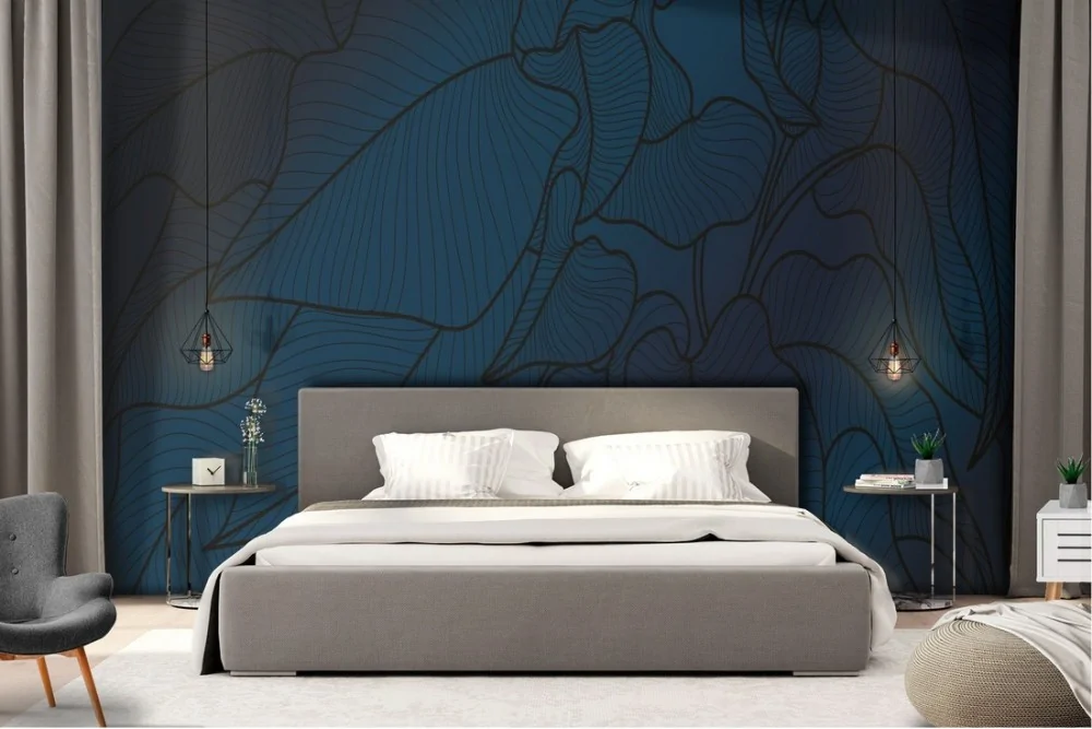 Minimalist blue stylized leaves wallpaper