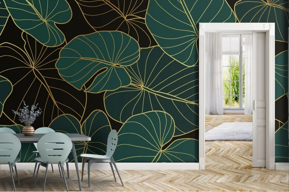 Wallpaper Design and Styles Flora and Fauna Luxury Stylized Tropical Leaves
