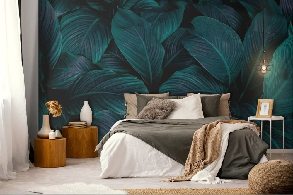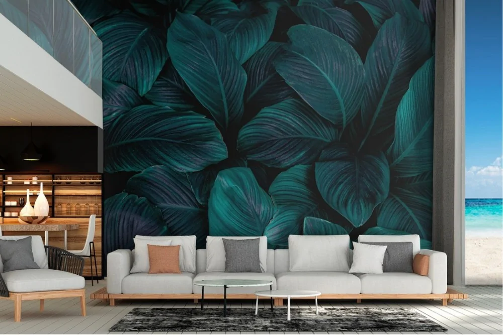 Dark green tropical leaves wallpaper