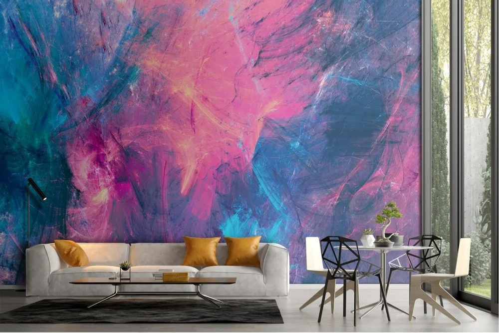 Blue and fuchsia abstract painted wallpaper design