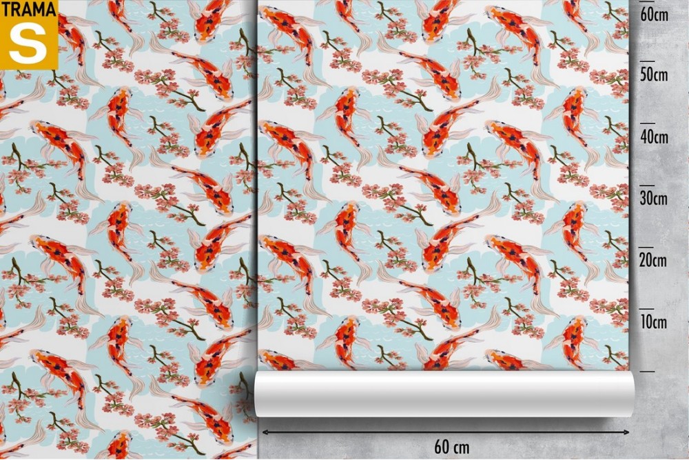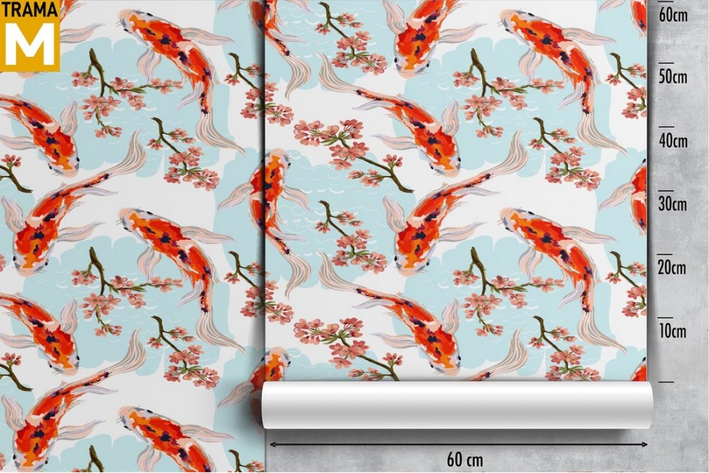 Wallpaper oriental decoration with carps and peach.