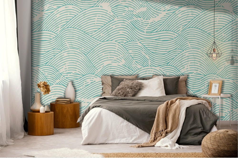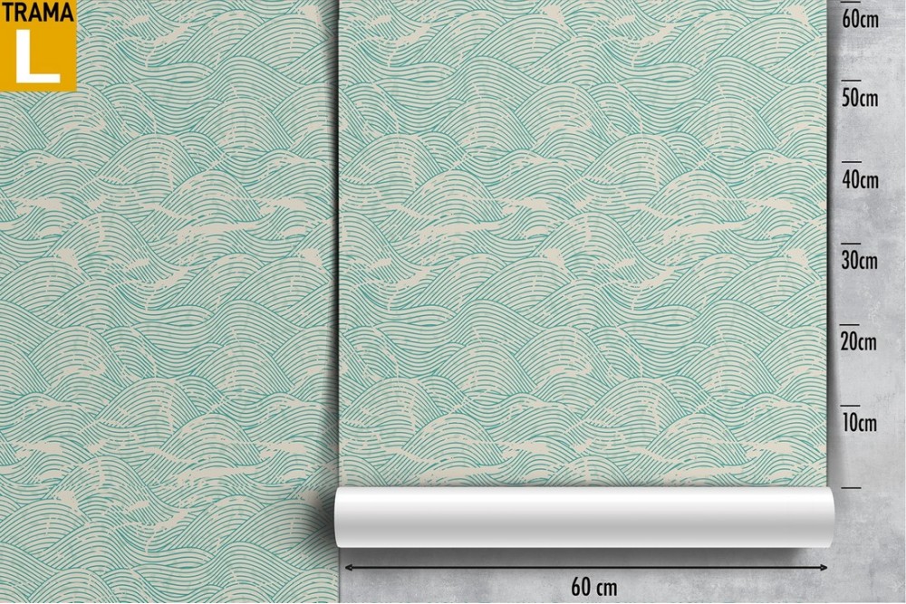 Stylized wave wallpaper with worn effect pattern.