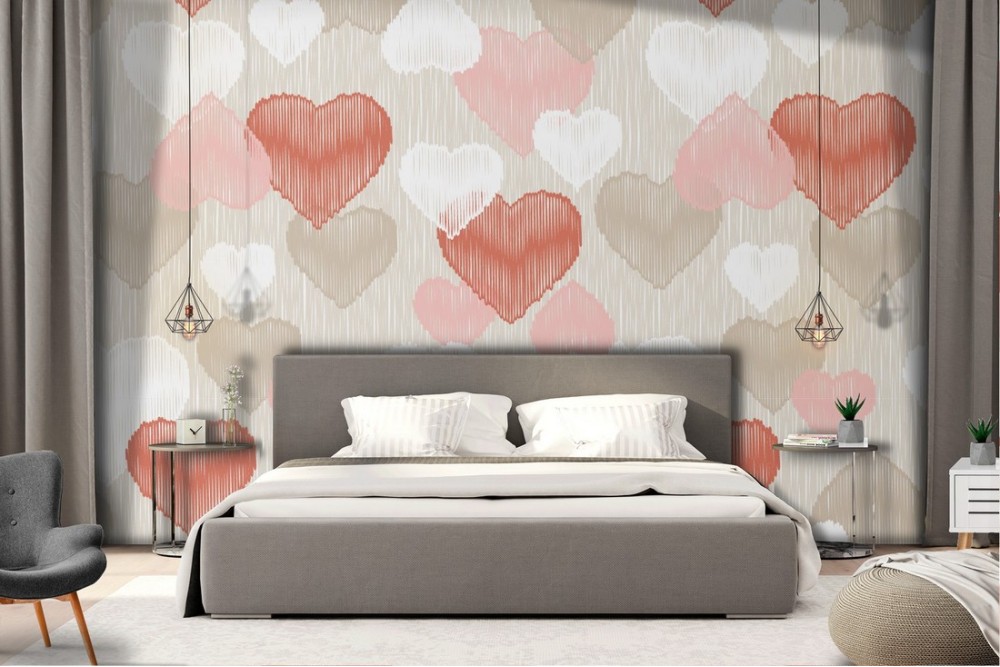 Red hearts modern pattern wallpaper decoration.
