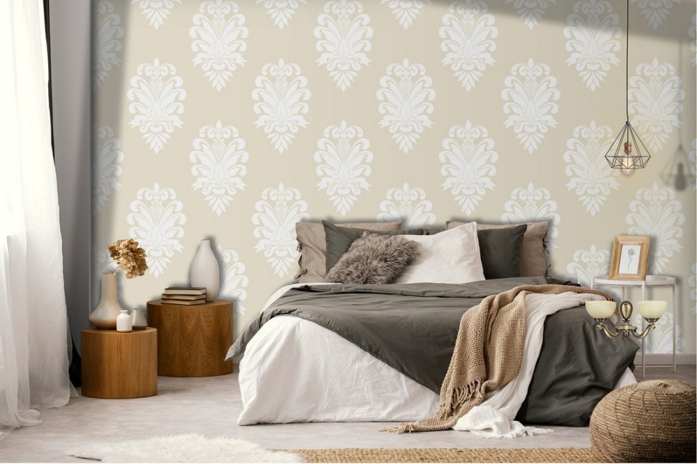 Damask wallpaper vintage yellow decoration.