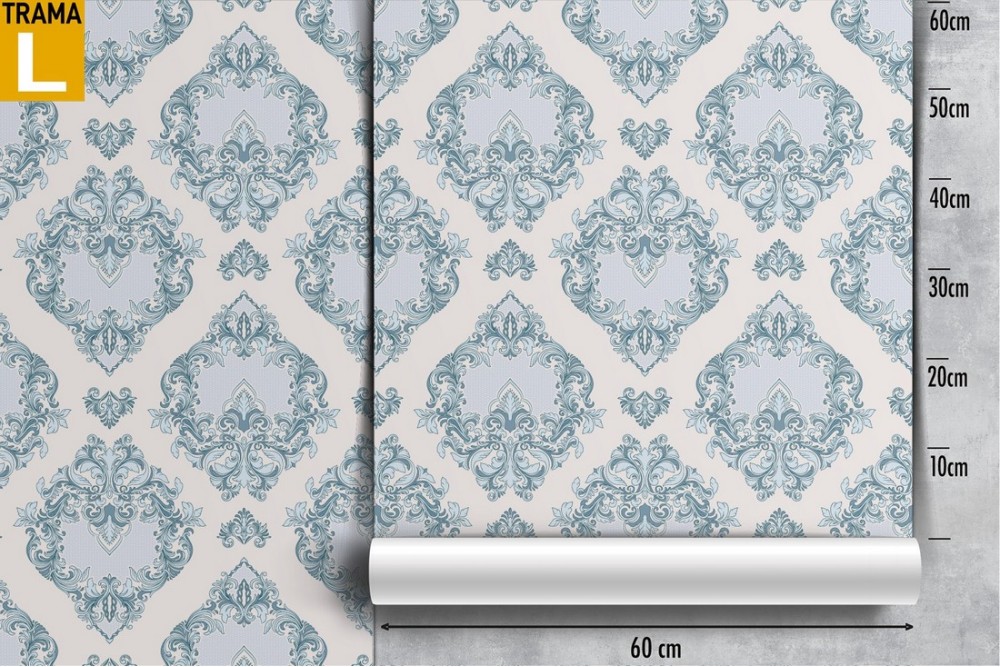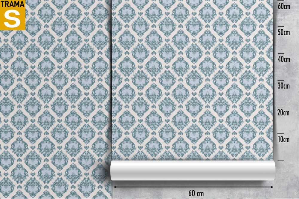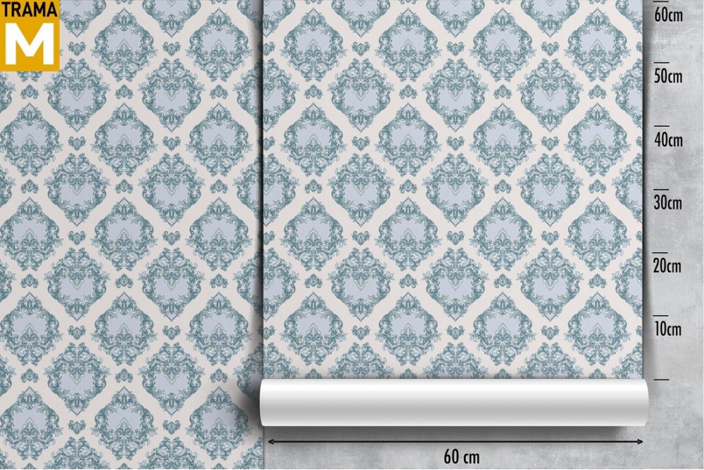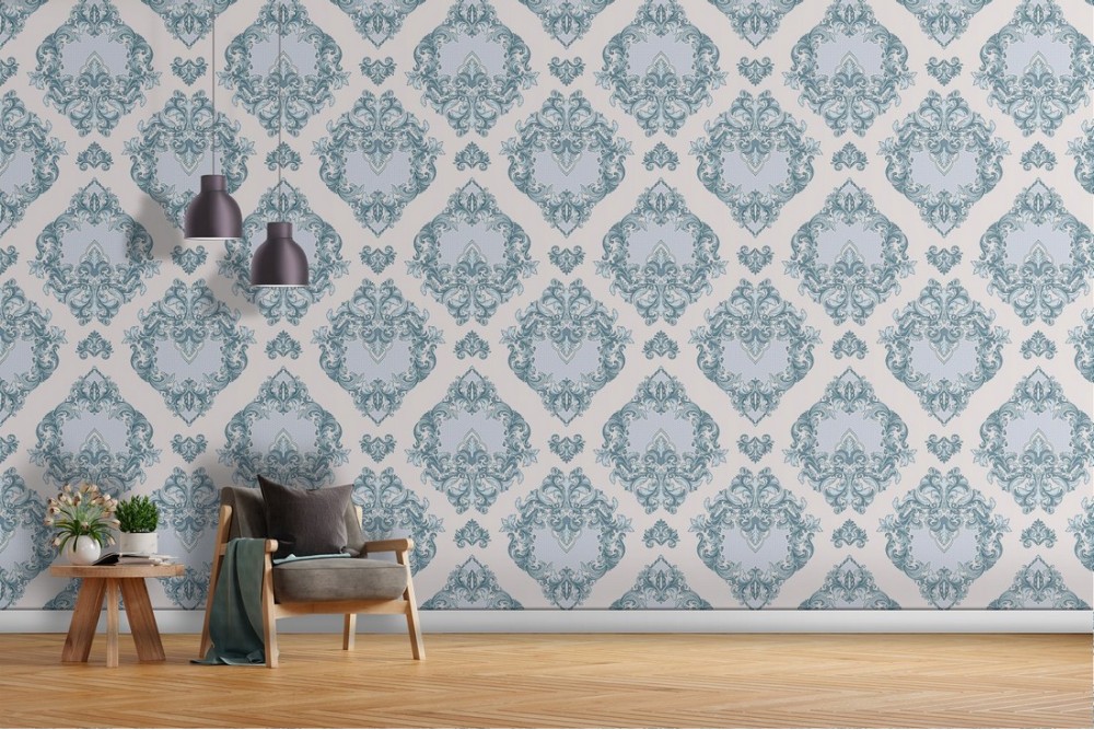 Damask blue wallpaper decoration.