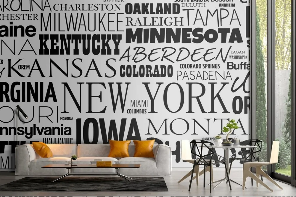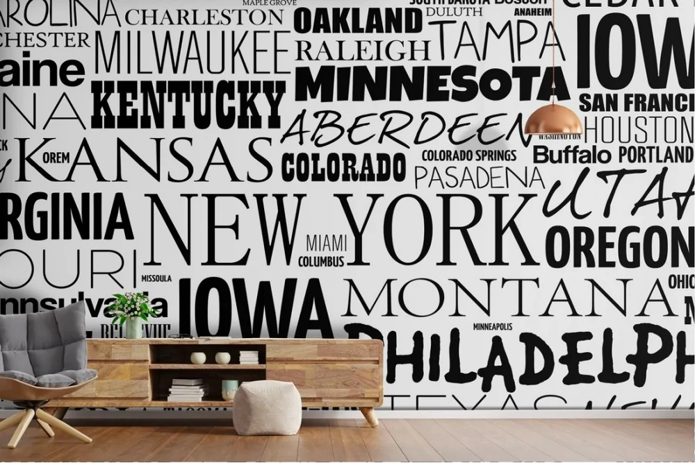 Modern Wallpaper with writings of American cities