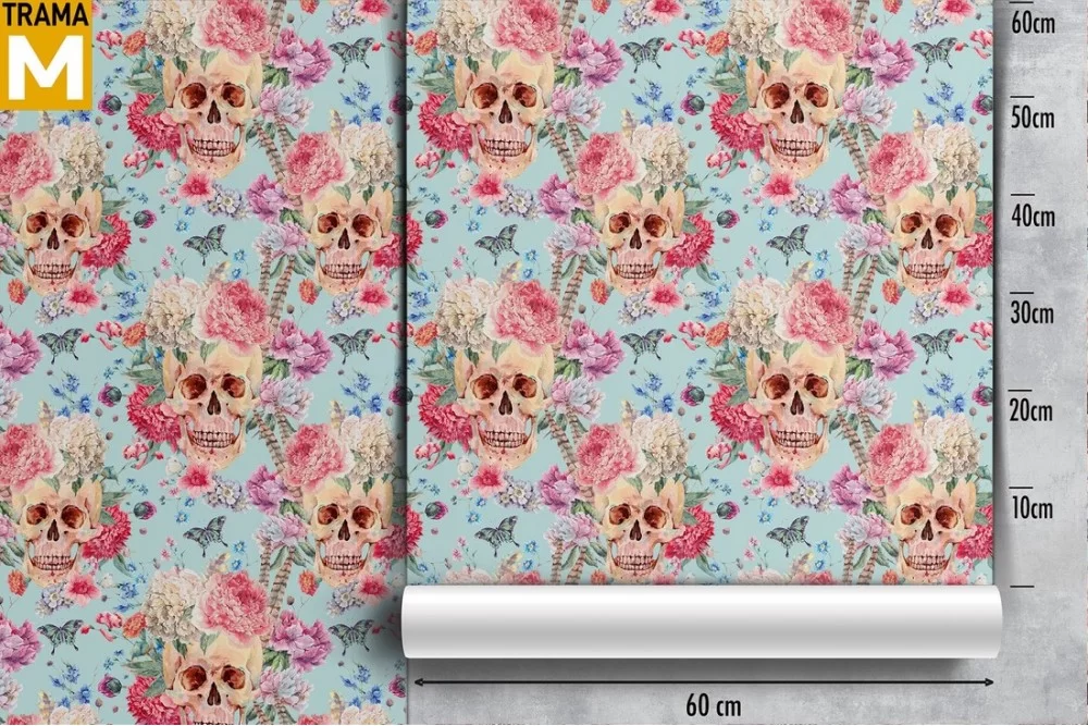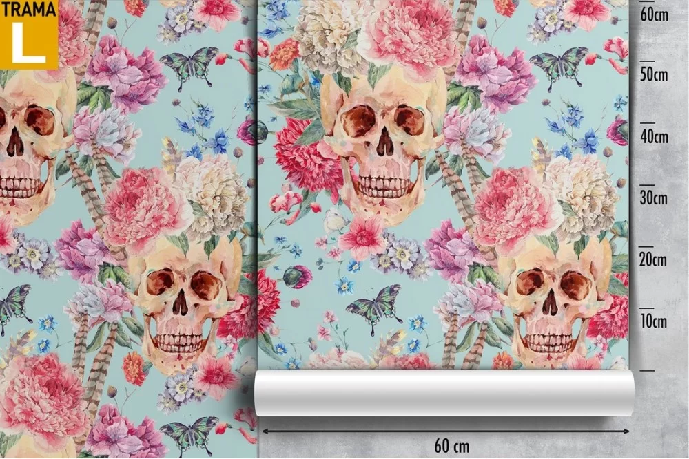 Dark Wallpaper and Modern Skull Flowers