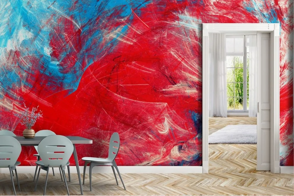 Abstract painted wallpaper in red and blue colors