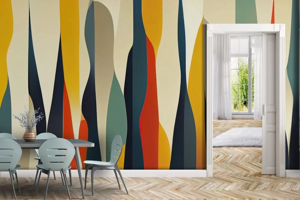The wallpaper 70s Vintage Abstract Colourful, is produced exclusively in Italy to guarantee the highest quality and craftsmanship. All our wallpapers can be customised FREE of charge in style and colours to better suit your rooms and your needs. Our designers will also create a simulation of the new wallpaper in your rooms to see in advance the graphic effect obtained. Subsequently, the wallpaper is printed to measure in very high resolution. All our wallpapers do not contain solvents or dangerous chemicals. We have a wide range of finishes including CLASSIC SMOOTH, CANVAS FABRIC, ADHESIVE or FIBREGLASS (discover the characteristics in the wallpaper type section). The modern wallpaper is perfect for giving a touch of style to your rooms, while the vintage wallpaper is ideal for those who love the 70s style. If you are looking for a 3D effect instead, we recommend the wallpaper 3D. Our product is suitable for every room in the house, from the bedroom wallpaper to the living room or children's room. We offer refined and elegant wallpapers, if instead you prefer a more natural style you can choose from our wallpapers with flowers, trees and woods. For bathrooms and damp environments, we recommend the wallpaper in fibreglass, while to cover furniture or tiles, you can use our adhesive wallpaper. We are proud to be one of the best brands of wallpaper on the market and to guarantee a high quality and certified product. (# Bedroom wallpaper, Living room wallpapers, refined, modern, design, best wallpaper, vintage wallpaper, 70s wallpaper )