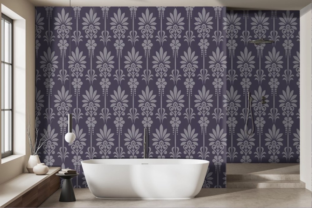 Purple Damask Wallpaper -a373