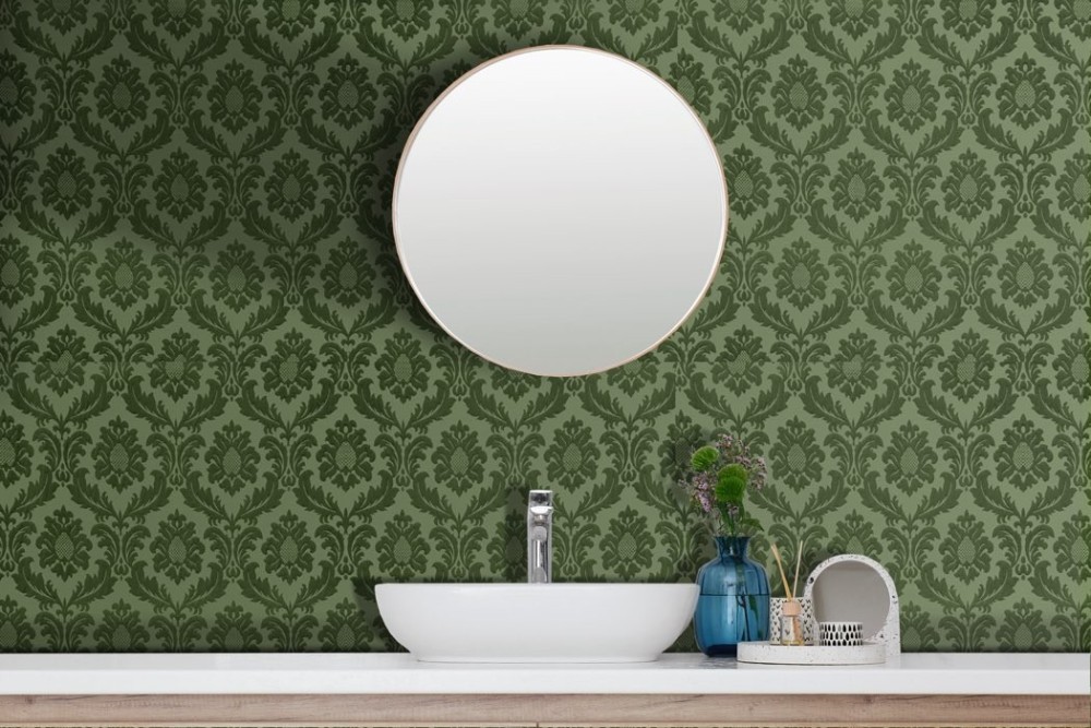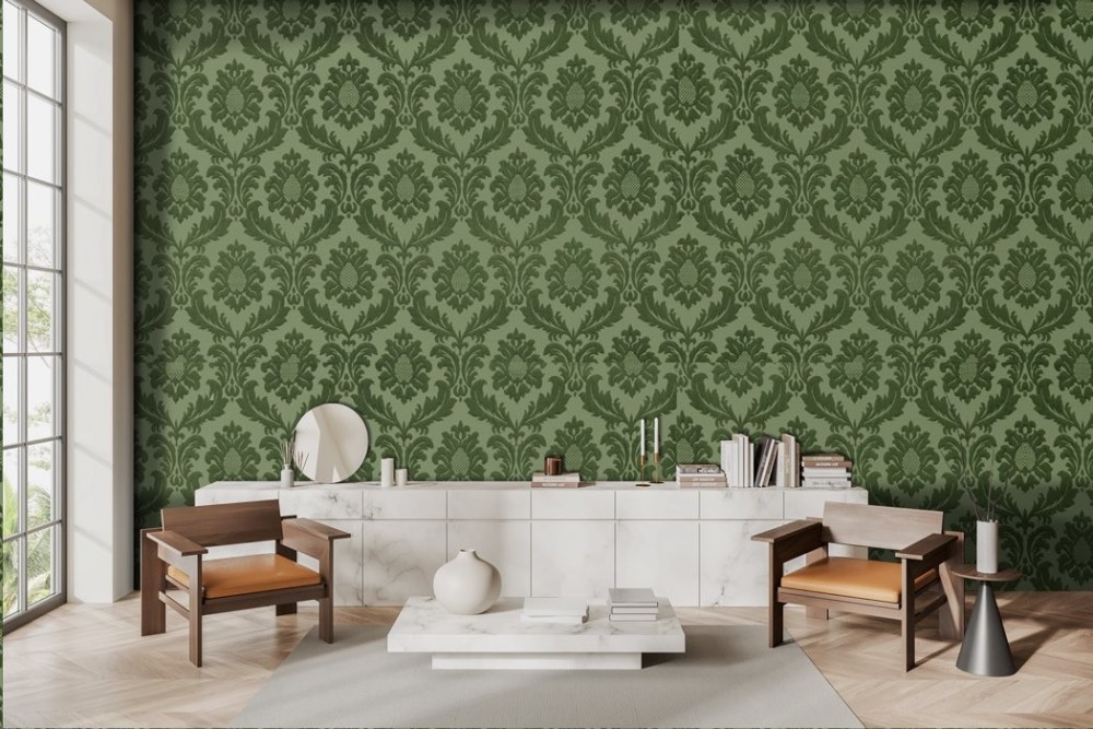 Green damask vintage wallpaper