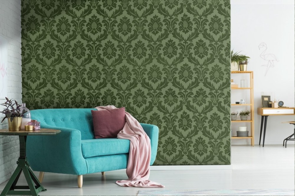 Green Damask Vintage Wallpaper -a465