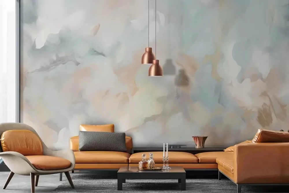 Carta da parati astratta colori pastello, vivace e naturale. Ideale per ambienti moderni. Ecologica e personalizzabile.