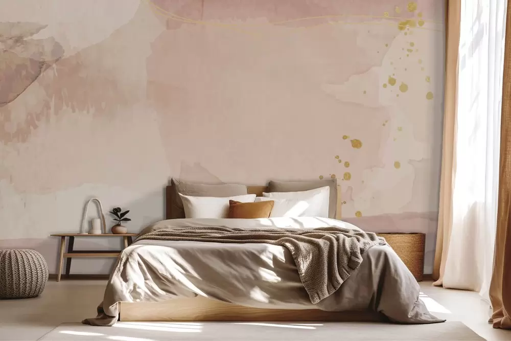 Carta da parati sfumature rosa astratte, materica e avvolgente. Ideale per ambienti moderni. Inchiostri a base d’acqua, atossici.