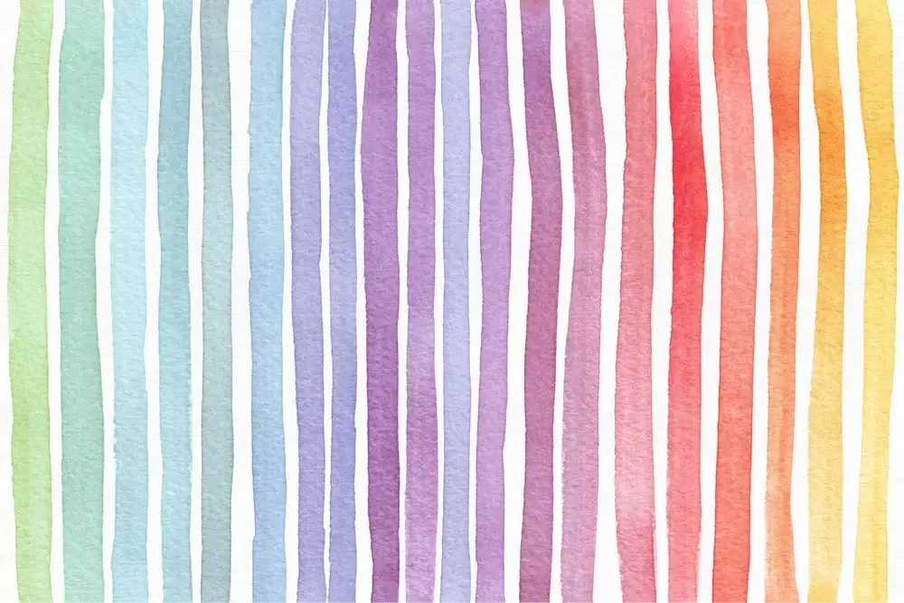 Carta da parati strisce arcobaleno acquerello, vivace e naturale. Ideale per ambienti moderni. Ecologica e personalizzabile.