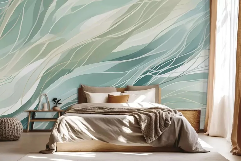 Crea un ambiente rilassante con il design della carta da parati onde astratte
