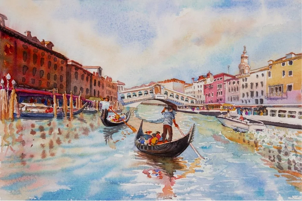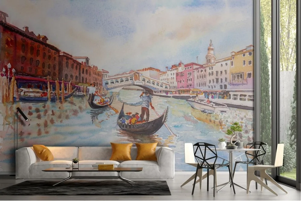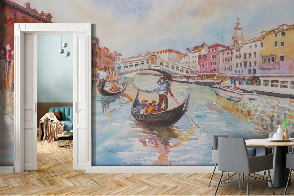 Venice gondola illustrated wallpaper