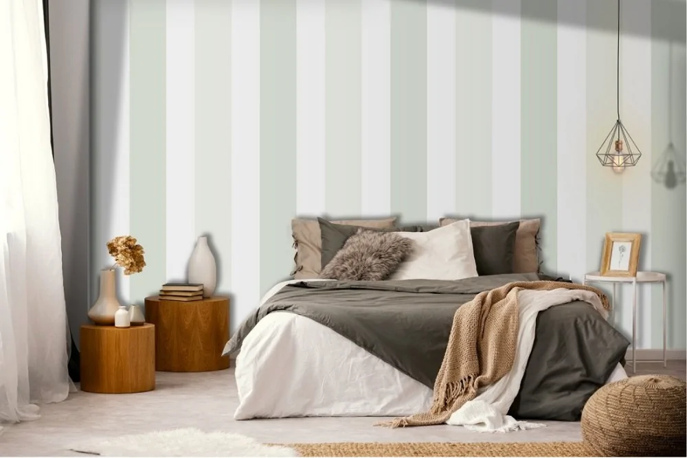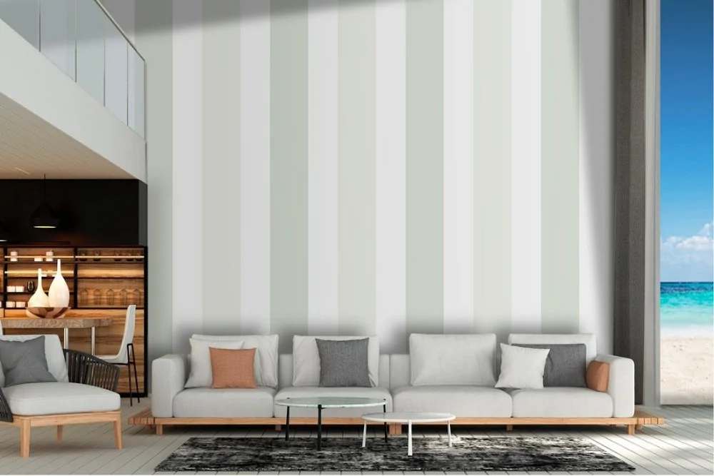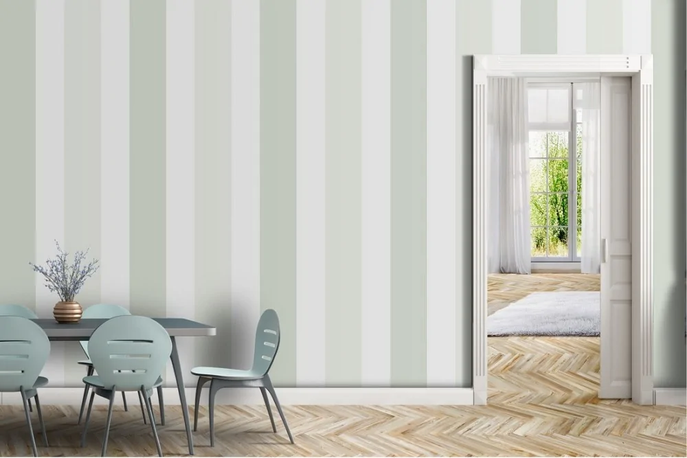 Classic green and white striped wallpaper