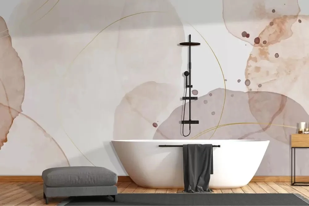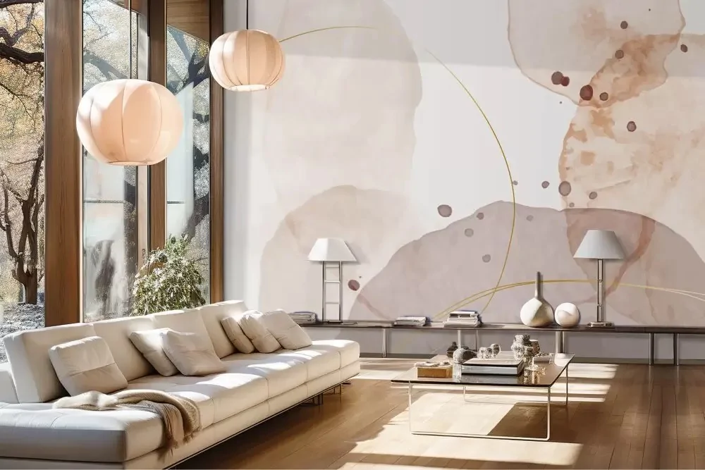 Carta da parati pastello design astratto, raffinata e moderna. Ideale per ambienti moderni. Personalizzabile su misura.