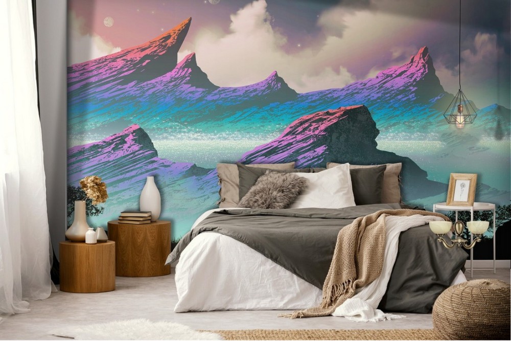 Wallpaper illustration modern synthwave mountains